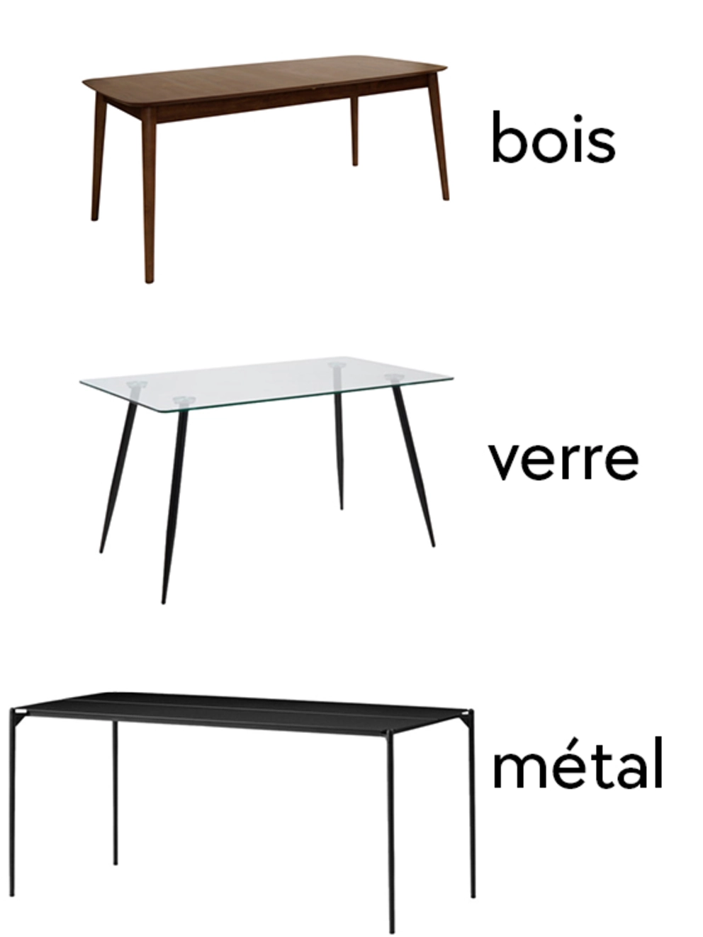 Si la forme de la table de salle à manger est une affaire de goût, nos designers d’intérieur te livrent quelques astuces: très tendance actuellement, les tables rectangulaires sont considérées comme de véritables meubles d’exception. Une table ronde a généralement belle allure dans une pièce carrée. Et si tu associes un plateau solide à des pieds de table fins, tu obtiens un véritable objet design.