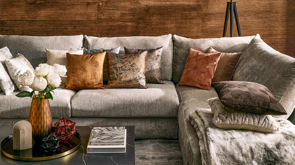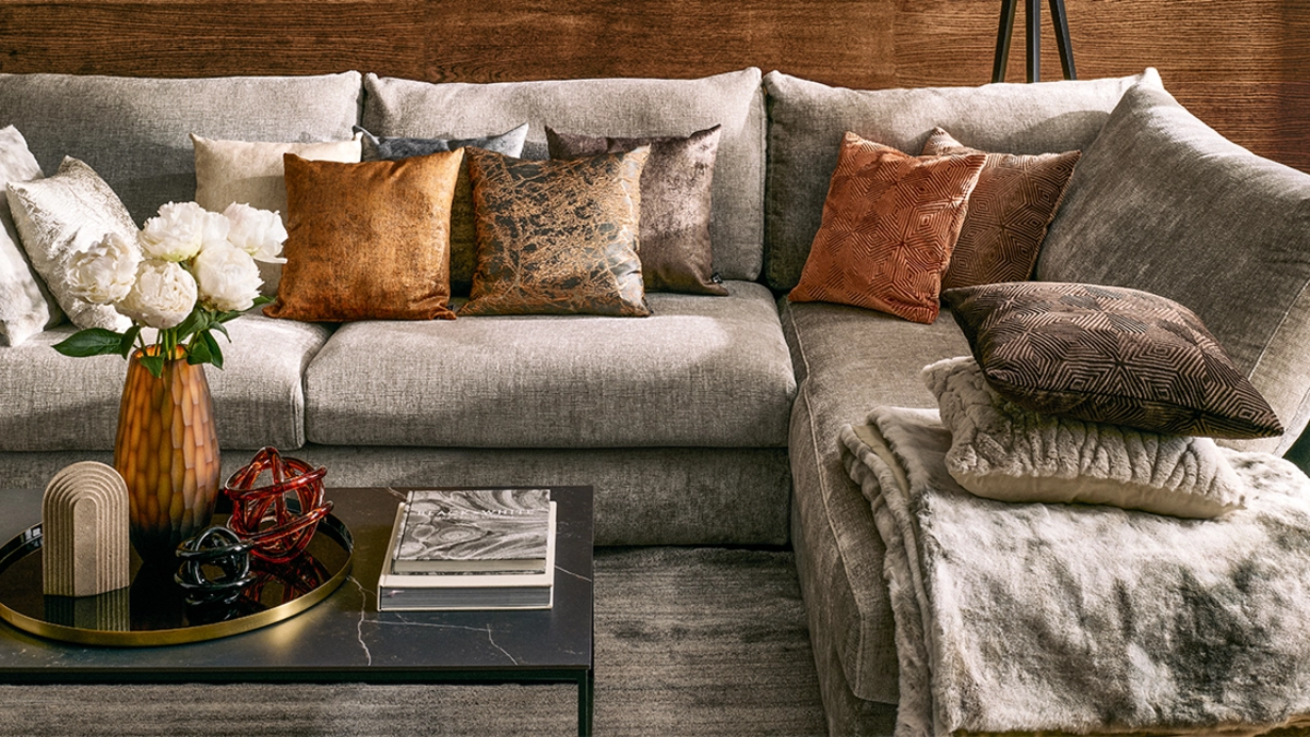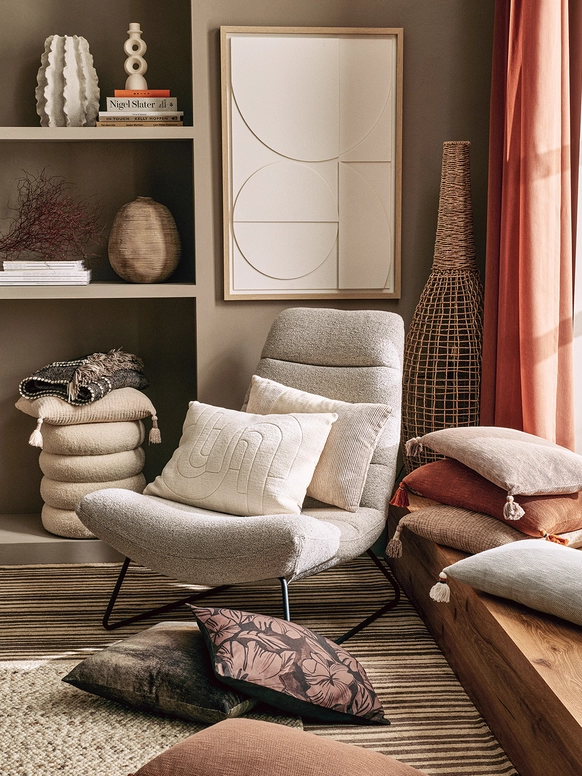 Bon à savoir : imagine des rideaux au tombé léger, des tapis douillets, des coussins et des couvertures sur le canapé – les textiles d’ameublement élégants augmentent le niveau de confort dans la pièce de vie !