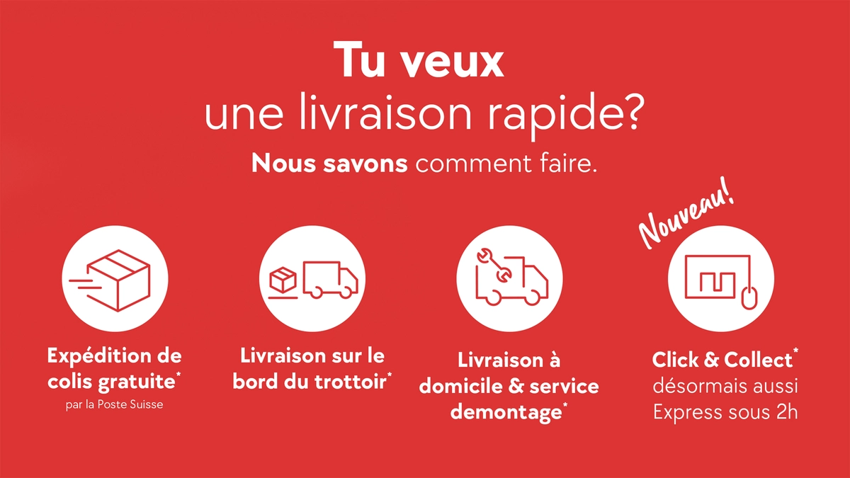 Gratuit dès CHF 100.– de commande. Des frais d’expédition de CHF 9.– sont facturés pour les commandes inférieures à CHF 100.–.