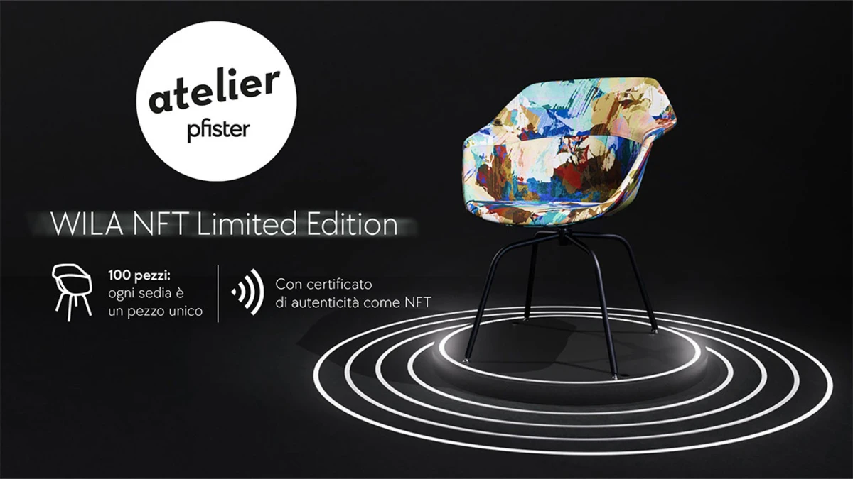 Solo 100 pezzi e ciascuno un pezzo unico: la sedia Wila di atelier pfister è disponibile dal 17 agosto come NFT in un’edizione speciale limitata con un certificato di autenticità. Progettata da This Weber e impreziosita con motivi unici di Christoph Hefti, ciascuna delle 100 sedie create in modo individuale unisce design, arte e comfort svizzeri. Ogni sedia è un pezzo unico e contiene una targhetta NFC che porta a una landing page speciale dell’NFT.
