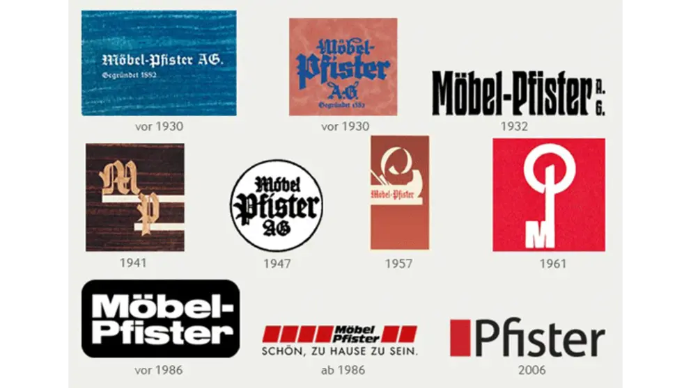 Dopo un certo tempo, i loghi aziendali sono analizzati in merito alla loro presentazione e al loro messaggio. Per restare al passo con i tempi, di tanto in tanto devono essere adattati. L'ultimo cambiamento importante è avvenuto il primo febbraio 2006 quando, dopo oltre 120 anni, è stata tolta dal logo la parola "mobili".