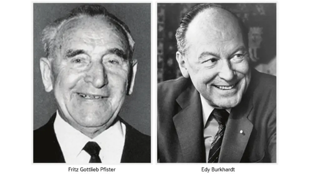 Dopo quasi 50 anni di attività, Fritz Gottlieb Pfister cede la presidenza del Consiglio di Amministrazione a Edy Burkhardt, il suo collaboratore più stretto.