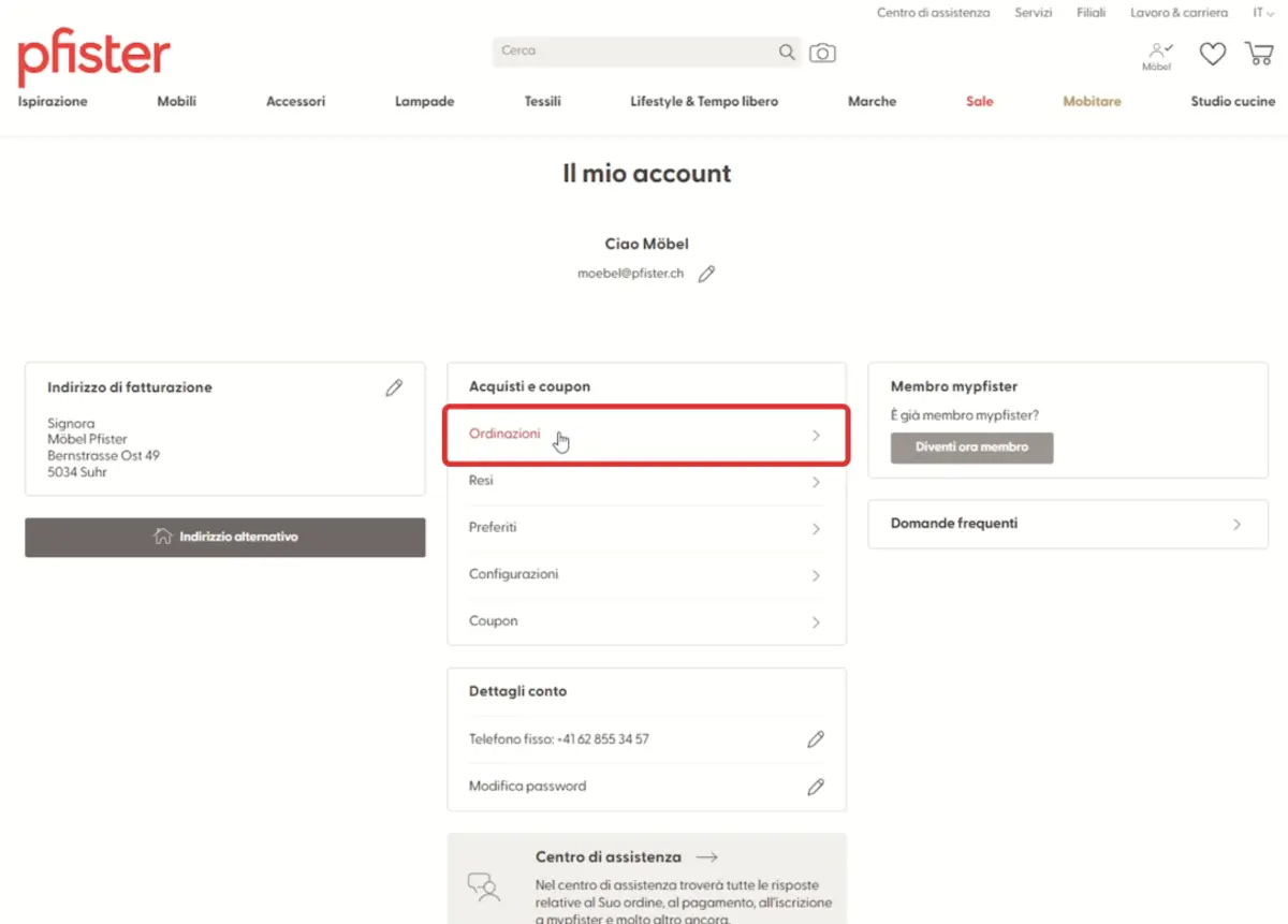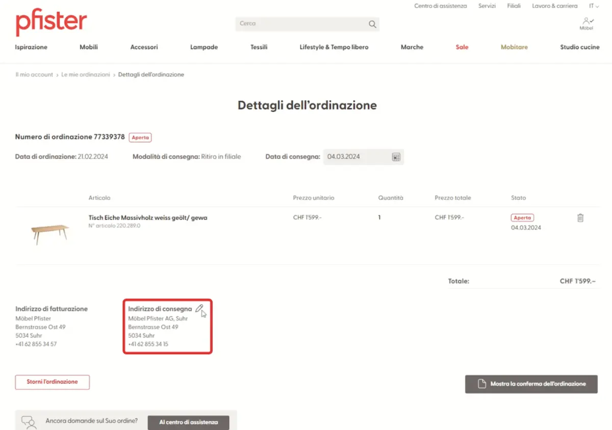 - Posso ritirare il mio ordine presso una filiale pfister?