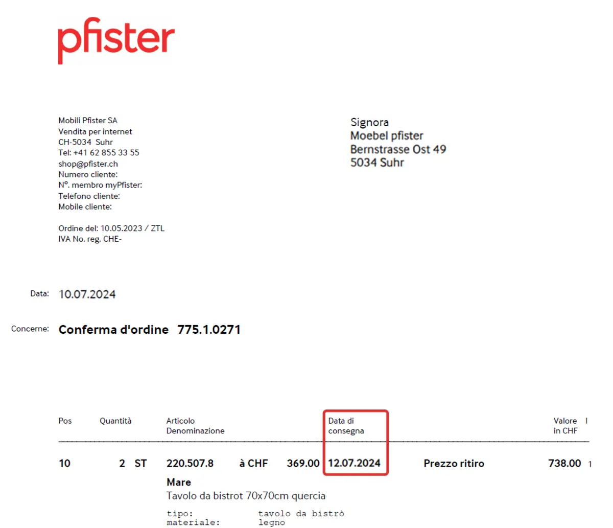 - Posso ritirare il mio ordine presso una filiale pfister?