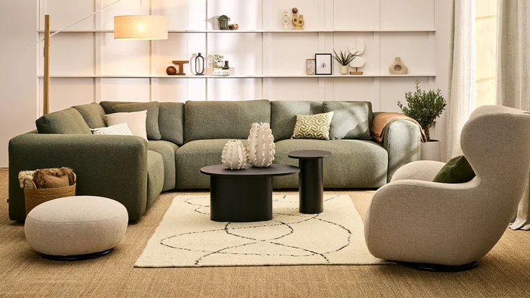 Accoglienti mobili imbottiti in tonalità chiare e materiali morbidi, come i divani bubble o le poltrone bubble, catturano l’essenza del Cosy Greige. Emanano un fascino moderno e sono ugualmente semplici e senza tempo. I cuscini decorativi in materiali naturali strutturati e i plaid leggeri intensificano l’atmosfera accogliente.