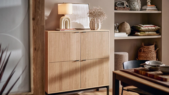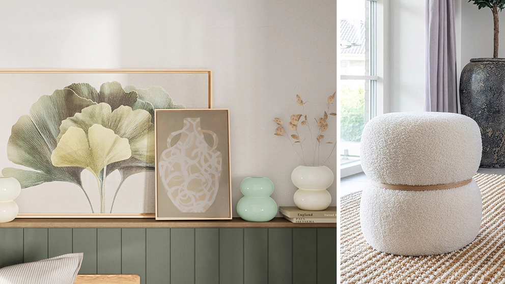 La tendenza bubble si diffonde anche tra gli accessori d’arredo: ti aspettano vasi bubble ariosi in ceramica opaca o vetro brillante, vasi rotondi in argilla dotati di texture e decorativi sgabelli bubble. Prevalgono forme organiche, materiali naturali e motivi discreti: il mondo del Cosy Greige è sobrio, morbido e accogliente.