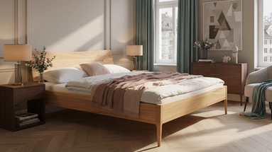 Goditi notti fresche nonostante le temperature calde scegliendo materiali naturali e creando un’atmosfera luminosa e ariosa. Un semplice letto in legno di edy&liv e biancheria da letto in lino nei colori bianco sporco, tonalità sabbia, fresco giallo senape o verde salvia ti offrono le condizioni ideali per trascorrere notti riposanti e portare l’atmosfera accogliente del Cosy Greige in camera da letto.