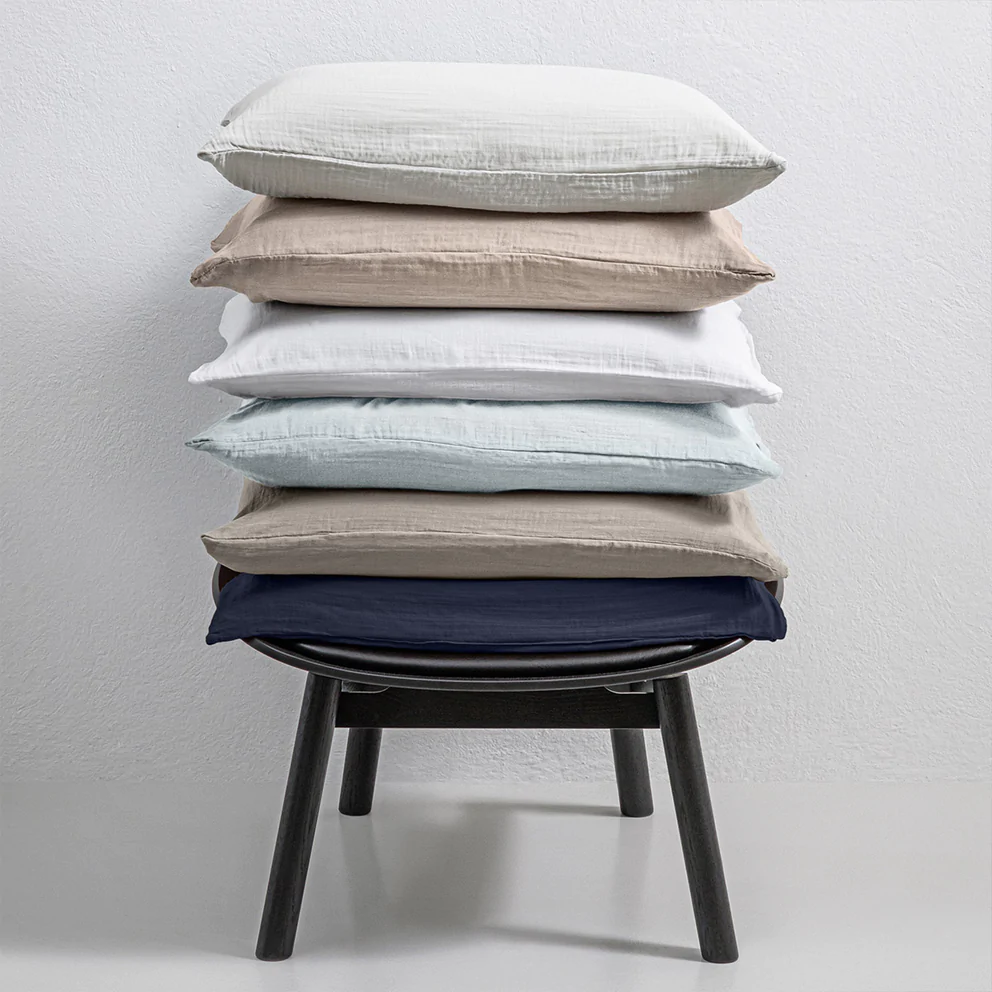 Sempach rappresenta un’ottima alternativa al lino. L’avvolgente tessuto in mussola rende questa biancheria da letto ultra morbida ed extra piacevole. Inoltre, la mussola è davvero resistente rispetto ad altre fibre naturali. La biancheria da letto Sempach è particolarmente traspirante e assorbente: perfetta per un sonno sempre fresco. I copripiumini e le federe per cuscino della collezione di design di atelier pfister sono realizzati al 100% in cotone.
