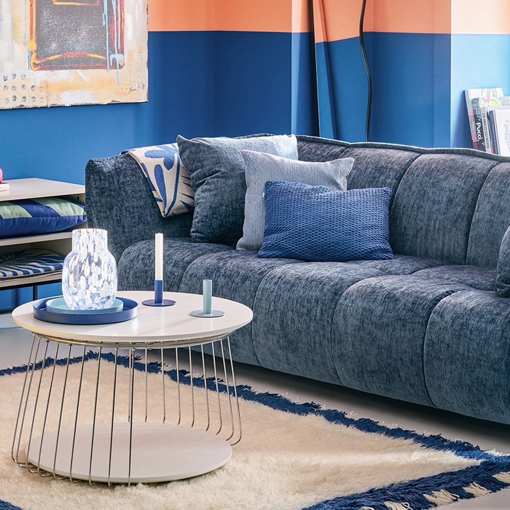 Buono a sapersi: adegua sempre la larghezza del divano alla stanza e lascia abbastanza spazio intorno. La regola generale è: il divano deve occupare al massimo due terzi della parete vicino alla quale è collocato. Scegli, inoltre, un modello con profondità di seduta ridotta (circa 80–90 cm di profondità totale), così la stanza non risulta troppo piena e resta abbastanza spazio per il passaggio.