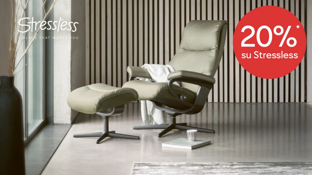 * 20% sull’assortimento Stressless®, valido fino al 31.3.2026. Offerta non cumulabile con altre promozioni e non valida per i servizi e gli ordini già emessi. I membri mypfister approfittano di un bonus aggiuntivo del 2%.