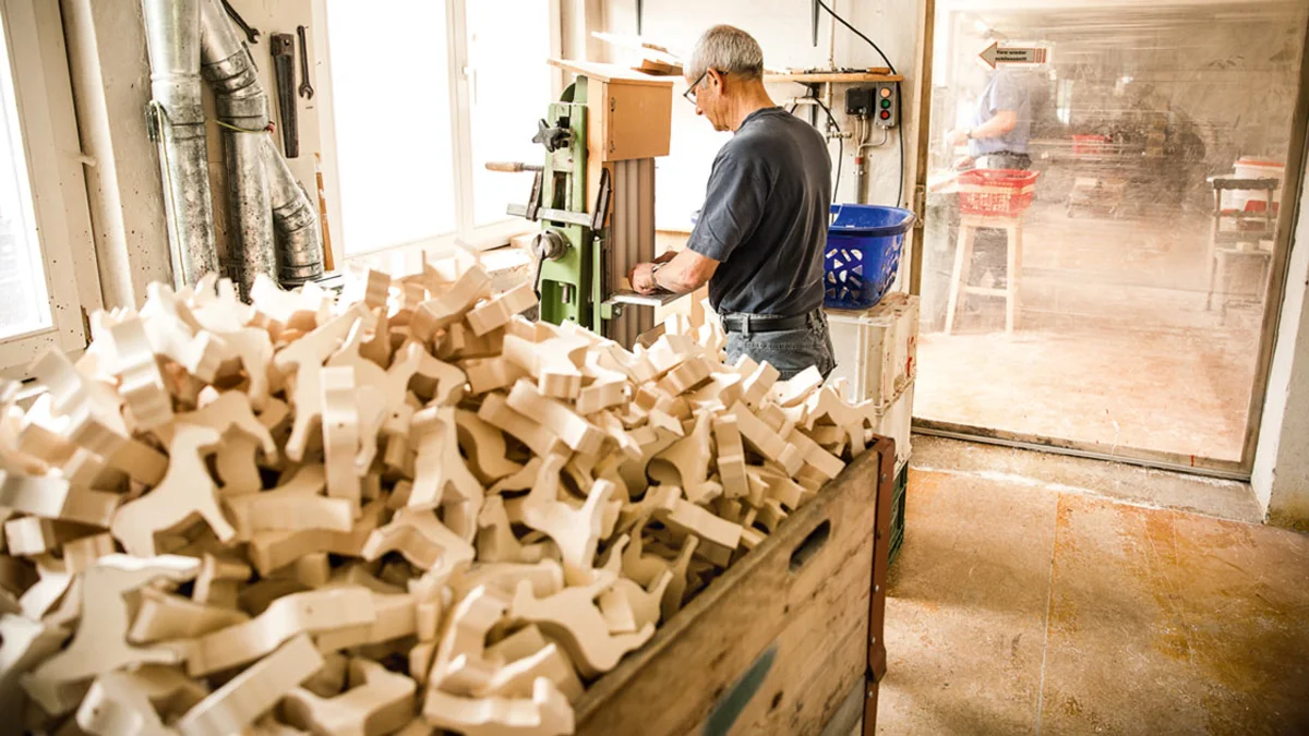 Da tre generazioni da Trauffer vengono realizzati giocattoli per bambini tradizionali. Il tutto è iniziato con una mucca intagliata a mano che nel 1938 ha posto la prima pietra, in legno, dell’impresa. Ormai l’azienda Trauffer con sede a Hofstetten gode di fama mondiale. Alla mucca si sono aggiunte, oltre a molti altri animali e personaggi, intere fattorie. La realizzazione a mano da legno svizzero è da allora rimasta la stessa. Così ogni esemplare è un pezzo unico da tenere con cura in grado di regalare soddisfazioni ad almeno tre generazioni.