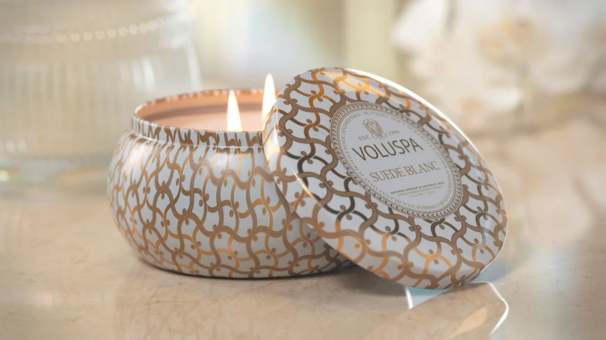 Voluspa è stata fondata nel 1999 da Traci e Troy Arntsen. La coppia è diventata famosa nel settore per avere lanciato un’innovazione, la candela profumata alla cera di cocco. Grazie al suo colore bianchissimo, il prodotto non è solo splendido da vedersi: la cera di cocco è in grado di immagazzinare perfettamente anche le note profumate. In questo modo è possibile creare fragranze particolarmente originali. Inoltre il materiale garantisce una combustione uniforme e pulita. I barattoli con disegni e i vetri colorati in cui sono confezionate le candele completano il sensuale pacchetto di Voluspa.