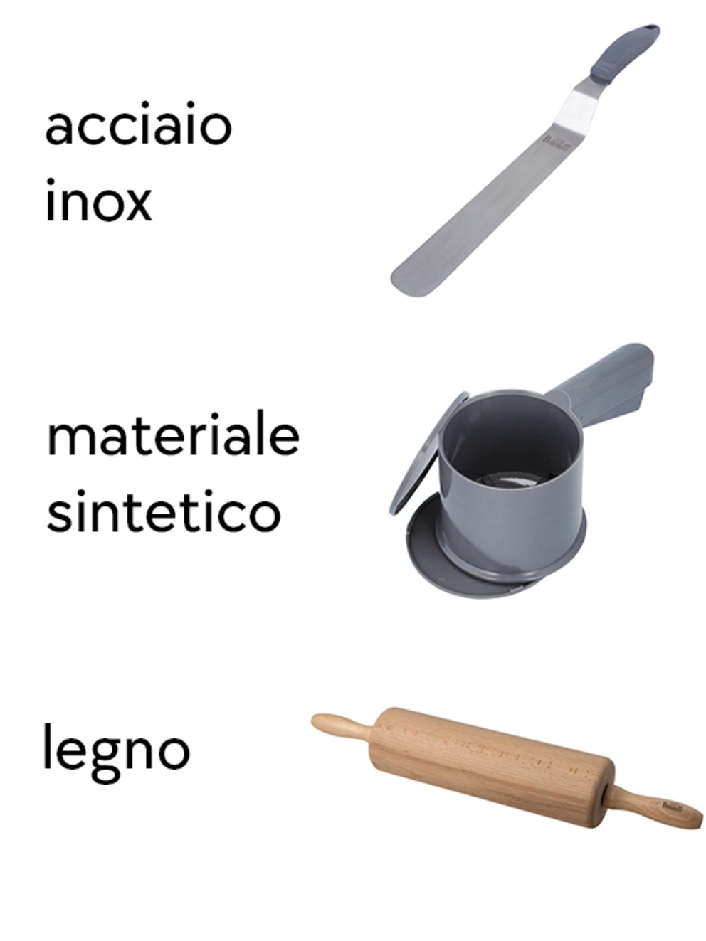 - Acciaio inossidabile: Questo materiale è durevole e resistente alla ruggine. È perfetto per ciotole, spatole e formine per biscotti ed è facile da pulire.