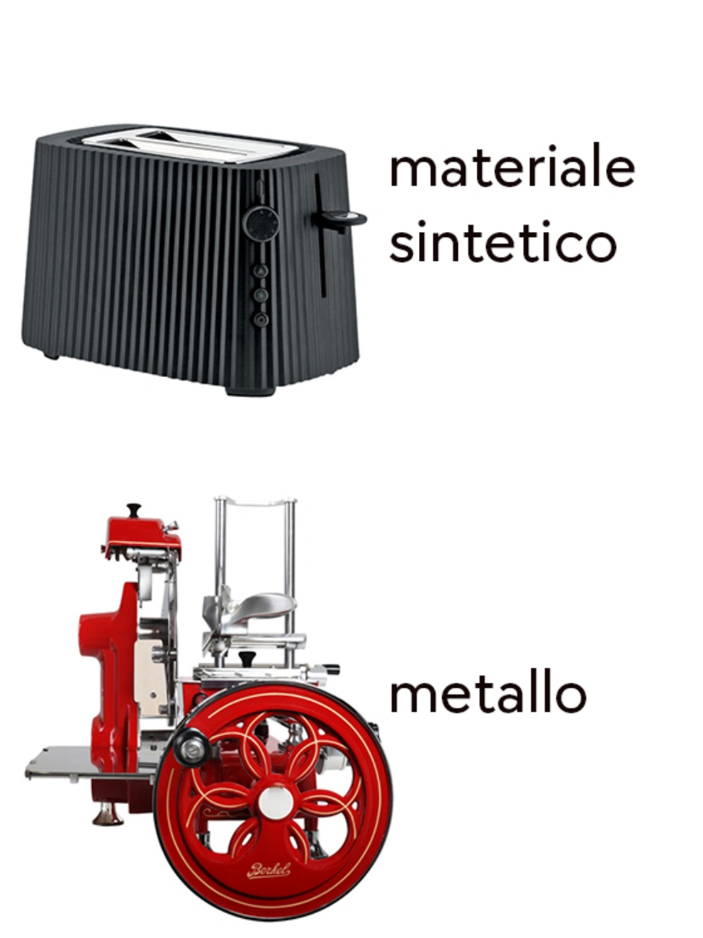 La maggior parte degli elettrodomestici da cucina sono realizzati in acciaio inossidabile, plastica o vetro o in un mix di materiali di alcune queste sostanze.
