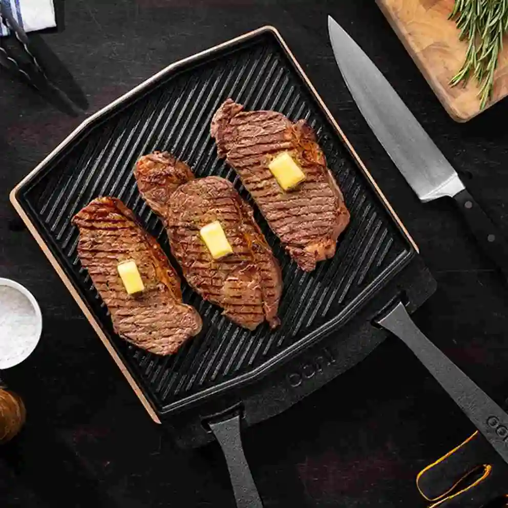 - Alluminio: il leggerissimo alluminio (o anche l’alluminio pressofuso) spicca per l’eccellente conduzione termica ed è un’ottima scelta per tutte le pietanze che devono essere portate a temperatura velocemente. Anche una padella di rame si distingue per la distribuzione omogenea del calore. Tuttavia, è molto più costosa e va adoperata principalmente sui fornelli a gas.