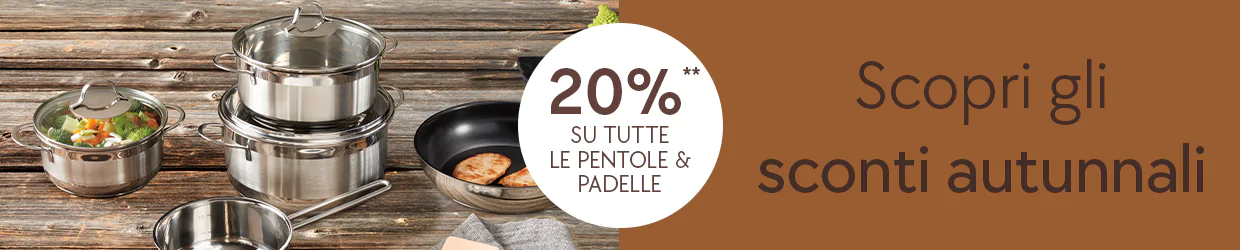** Valido per i membri mypfister e i nuovi membri. 20% su tutti i letti, materassi & reti, tavoli per la sala da pranzo, lampade da tavolo nonché pentole & padelle. Valido dal 7 al 20.10.2025. Non cumulabile con altre promozioni, non valido per i marchi Artemide, BICO, HAY, Kartell, one, riposa, seetalswiss, stressless, TEAM 7 e WILLISAU né per articoli online only, Mobitare, servizi, buoni regalo e ordini già emessi. Incluso bonus membri mypfister del 2%.