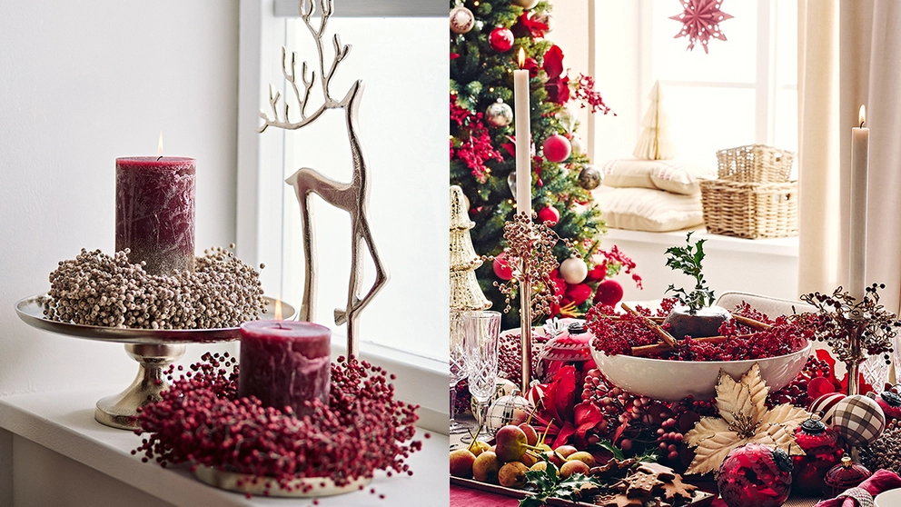 - Se ti piace un look sofisticato e intramontabile, scegli candele natalizie dorate o rosso scuro, come ad esempio dei ceri, che staranno bene su un tavolo in legno rustico con runner natalizio. Come candele d’Avvento o sull’albero di Natale, si abbinano meravigliosamente al verde intenso dei rami d’abete.