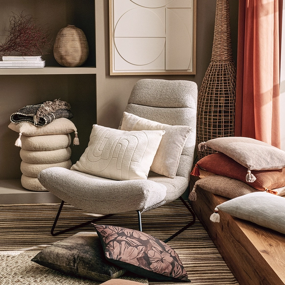 Soffici tappeti, avvolgenti coperte in lana e graziosi cuscini decorativi: i tessuti per la casa donano a ogni ambiente quella comodità in più. Da pfister trovi prodotti tessili in svariate versioni, con i quali puoi trasformare le tue quattro mura in un luogo di benessere.