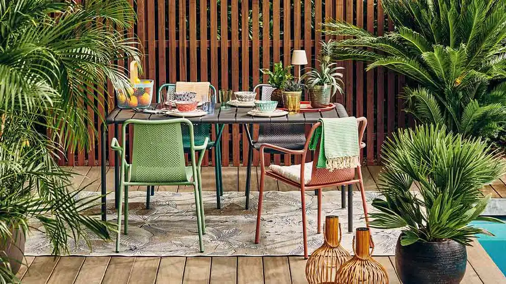 - Per dare risalto a una terrazza ancora un po’ anonima puoi scegliere un tavolo da giardino colorato. Puoi scegliere un verde fresco, un blu profondo o un rosso acceso: per apprezzare al meglio l’estate!