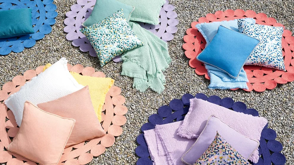 Che estate sarebbe senza telo mare? Per trasformare il tuo spazio esterno in una vera chicca, abbina ccuscini decorativi in tonalità pastello tinta unita a plaid dai colori fruttati e ad altri tessili a forma di frutti, con motivi floreali o stampe che ricordano le onde. Invogliano a rilassarsi e conferiscono a ogni spazio esterno un tocco fresco e marittimo. L’ideale per godersi il sole in tutta tranquillità in giardino!
