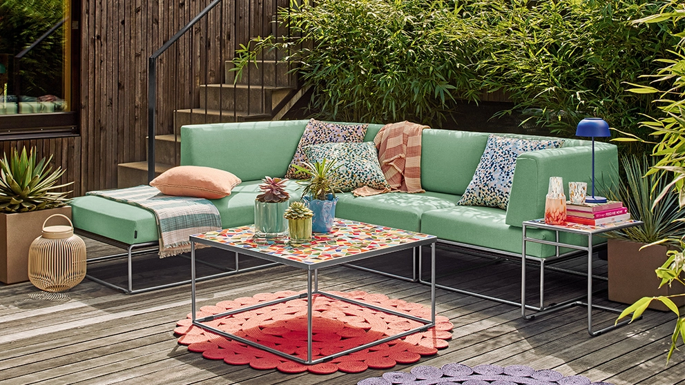 Nelle giornate soleggiate e nelle tiepide serate estive, su queste lounge da giardino dalle delicate tonalità pastello puoi rilassarti, leggere e mangiare, perché ora la vita si trasferisce all’aria aperta! Le lounge da giardino modulari ti permettono di organizzare la tua oasi outdoor con la massima flessibilità. Completa l’allestimento con sedie a sdraio dai colori vivaci e sedie a dondolo in stile piscina. Mancano solo i caldi raggi del sole e un bel drink!