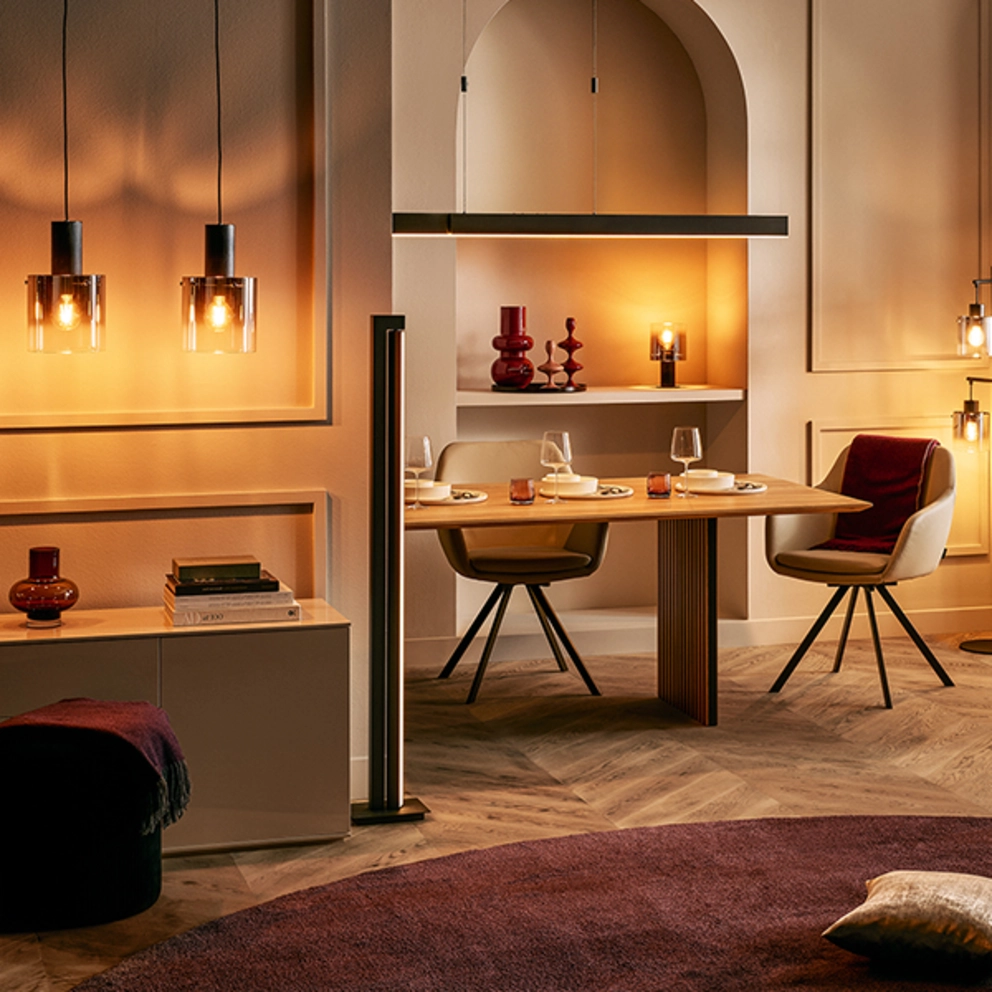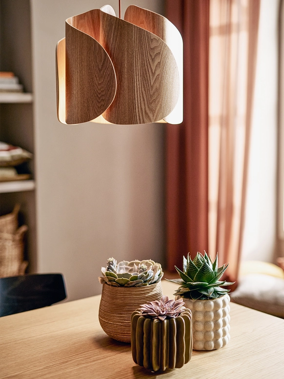 Nelle decorazioni della stagione più dorata dell’anno non può mancare un’illuminazione calda e delicata per concludere le giornate nell’intimità di casa. Le lampade in materiali naturali come la canna d’India intrecciata donano un piacevole calore ai tuoi ambienti e sottolineano il fascino autunnale. Un tocco moderno è invece dato dalle lampade in vetro o metallo che, con il loro design minimalista e le linee definite, creano un’atmosfera elegante e tranquilla. E naturalmente non possono mancare nemmeno le candele: nei sobri portacandele emanano una luce tenue e tremolante che renderà la tua casa ancora più accogliente.