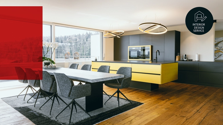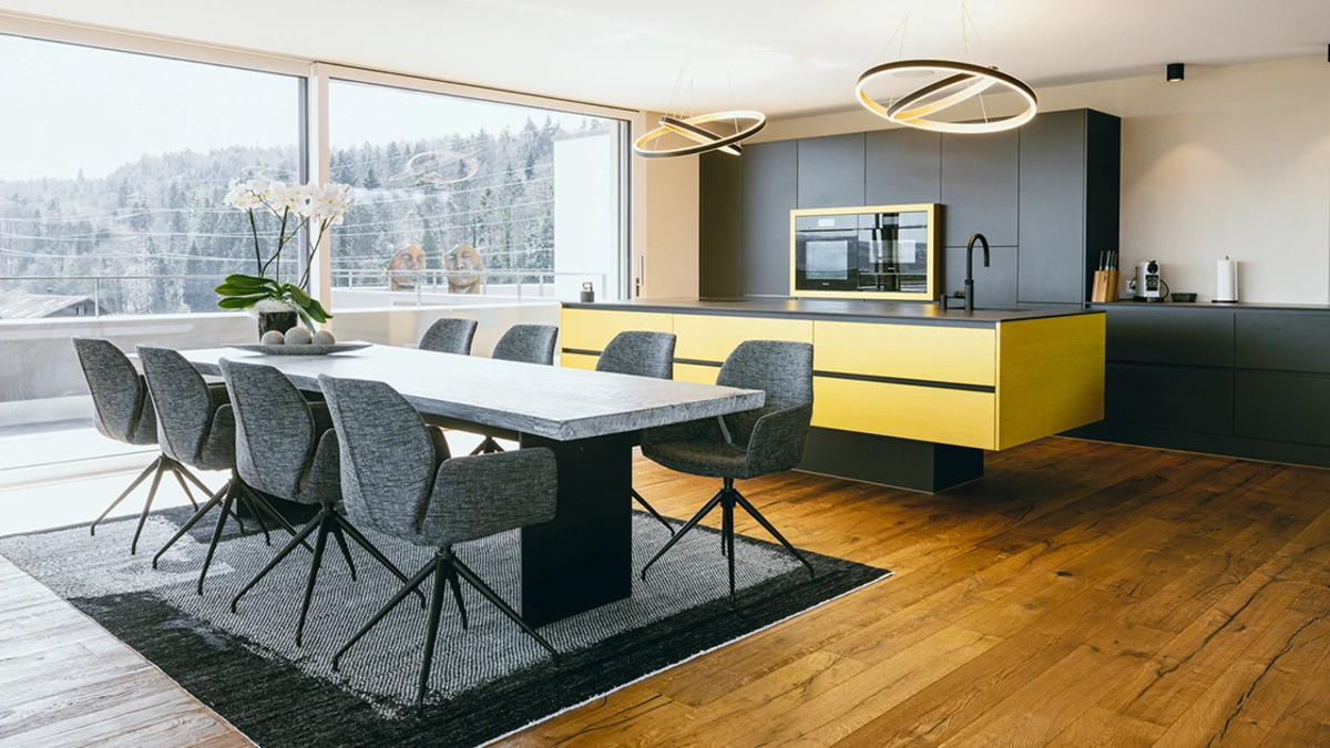 Il committente e proprietario dell’attico situato nel nuovo complesso ha dedicato grande attenzione non solo alla massima qualità, ma anche a un design pieno di stile. Per lui era importante avere anche una cucina e una zona pranzo accoglienti per ricevere parenti e amici. Altri elementi centrali sono stati l’illuminazione e la decorazione degli ambienti con immagini e accessori. Sulla base di queste richieste, i designer del servizio di interior design Pfister hanno realizzato dei moodboard per poter discutere delle prime idee.