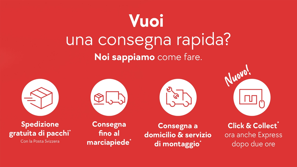Indipendentemente dall’ordine, per la spedizione di articoli ingombranti viene applicato un forfait di CHF 29.–.